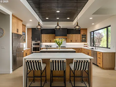 Down the hall, you'll find spacious bedrooms and luxurious bathrooms – four of each in the main house. And get this – attached to the roomy three-car garage is a whole separate little setup with another room, bathroom, and even a kitchenette. Perfect for guests, maybe a home office, or even rental income potential – a real bonus in the Beaverton market.