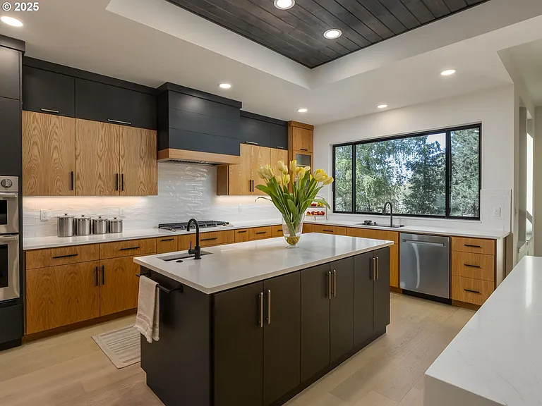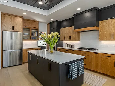 Step inside, and the first thing you'll notice is the gorgeous, open flow. The gourmet kitchen is truly the heart of the home, with not just one, but two stunning islands that naturally connect to where you'll eat and hang out. Picture hosting friends – everyone easily moving from prepping food on those waterfall quartz countertops to grabbing a drink and stepping out onto the brand new deck. It's indoor-outdoor living at its finest, perfect for those Northwest evenings.